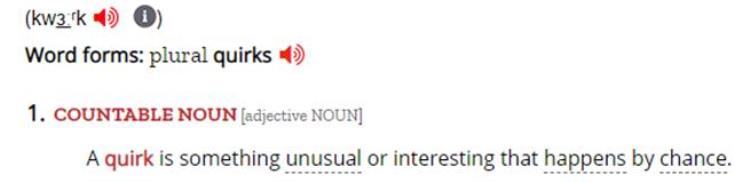 quirk n. 怪癖,古怪之处,(偶然发生的)怪事