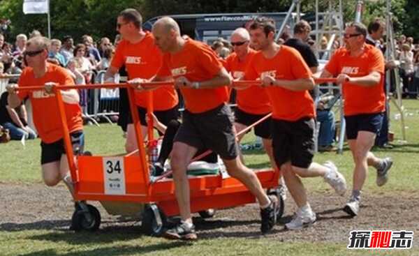 作为最不寻常的运动之一的推床比赛,已经被北约克郡克纳斯伯勒镇的人们所接受,现在比赛对任何人开放。这场3公里的赛跑以床为主题,比赛的队员需要跨越不同的障碍物,最后到达终点即为获胜。