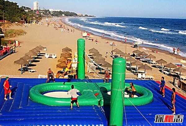 波沙球是壮观的,源自西班牙,类似排球,但也融合了足球、体操等元素,这个游戏是在一个特别设计的充气球场上进行的,在网的两边都有一个圆形蹦床。这是两队之间的一场球赛,每个队由3至5名队员组成。
