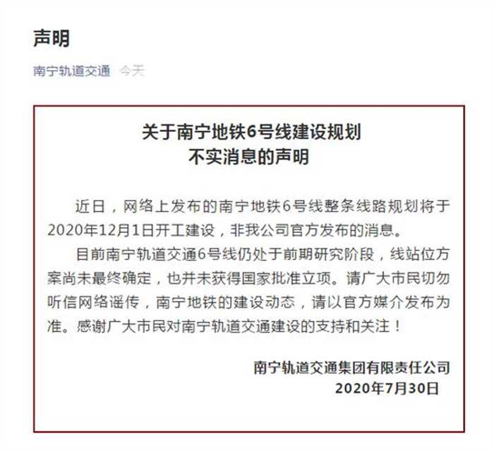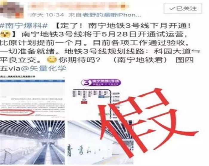 南宁地铁辟谣夜间免费乘车 公司没有发布类似公告