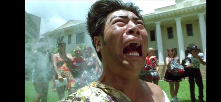“浮夸”是星爷电影的一大标志,在他演出的大部分喜剧电影里,都能看到他略显浮夸的演技:睁大的双眼、伸出的舌头、狰狞的表情,在本部电影中也不例外,虽然是为了制造笑点,但的确有些辣眼睛。虽然很多人觉得这种夸张是为了突出人物心理活动和烘托氛围,但有时烘托过度了便有些做作,或许这也是部分人不喜欢无厘头电影的原因之一吧。