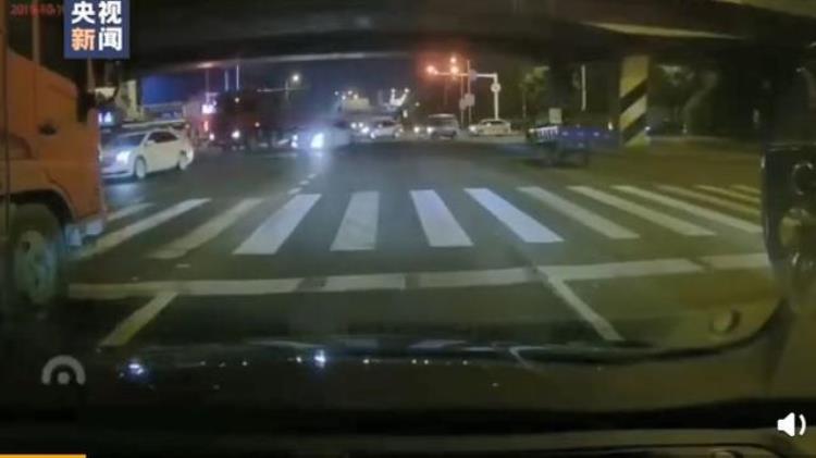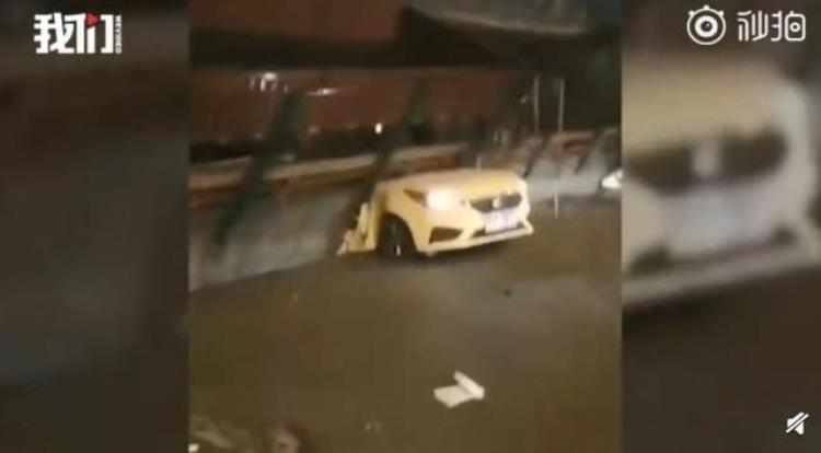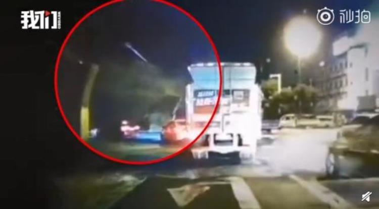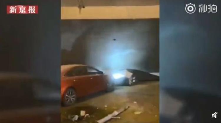 被垮塌的桥梁斩断的车头,车灯还亮着