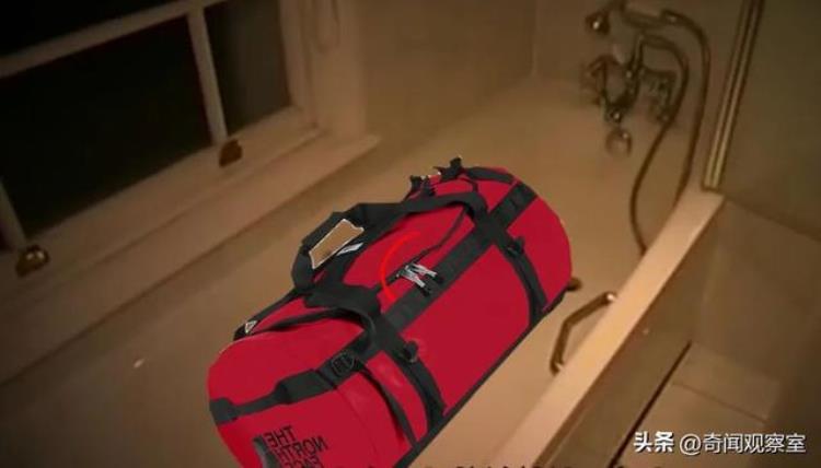 工作人员喊了几声,见无人回应就来到了二楼,推开浴室的门,发现浴缸里有一个红色的运动包。