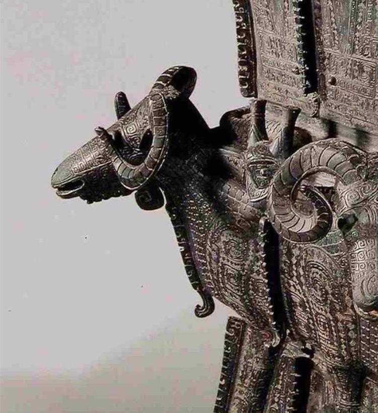 四羊方尊,1938年出土于湖南宁乡县黄材镇月山铺转耳仑的山腰上,是商朝晚期青铜礼器,祭祀用品。位列十大传世国宝之一,收藏于中国国家博物馆。