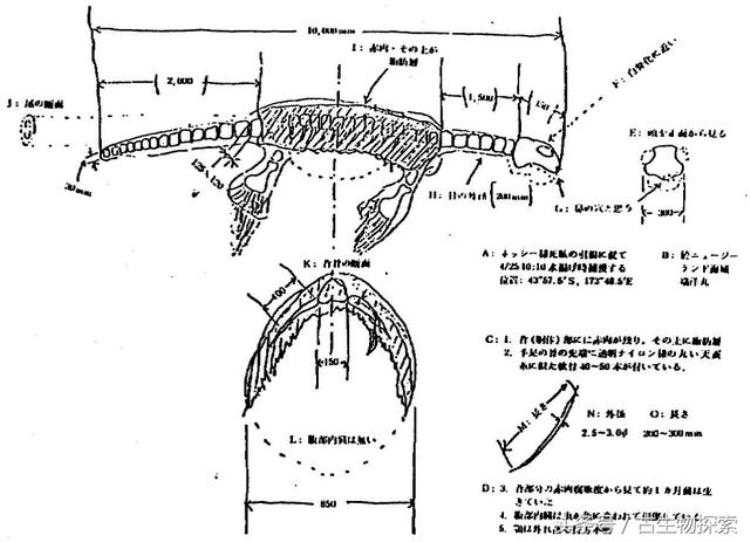 闻讯赶来的船长,见大家在欣赏一具腐臭的怪物,大发雷霆,他担心自己船舱里的鱼受到损失,命令船员们立即把它丢到海里去!幸好,随船有位矢野道彦先生,觉得这个发现不寻常,在怪兽抛下大海之前,拍摄了几张照片并做了相关记录。