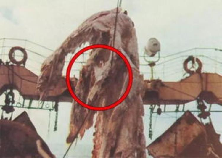 图注:“瑞洋丸”号渔网中的怪物尸体,图片来自网络