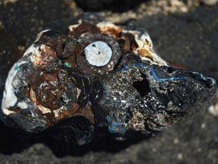 塑料留在我们身边的时间可能比想象得要更久。除了被丢进垃圾填埋场和困在北极冰川中,还有一些塑料变成了石头。夏威夷海岸开始形成一种由塑料-火山岩-海滩沙子-贝壳-珊瑚拼凑起来的新型岩石。在塑料球中仍然能够认出一些是牙刷,叉子,绳子,只要是“任何你能想到的东西”。一旦塑料与更致密的物质融合,比如岩石和珊瑚,它就会下沉到海底,那么它被埋藏并保存下来,成为地质记录的可能性就会增加。