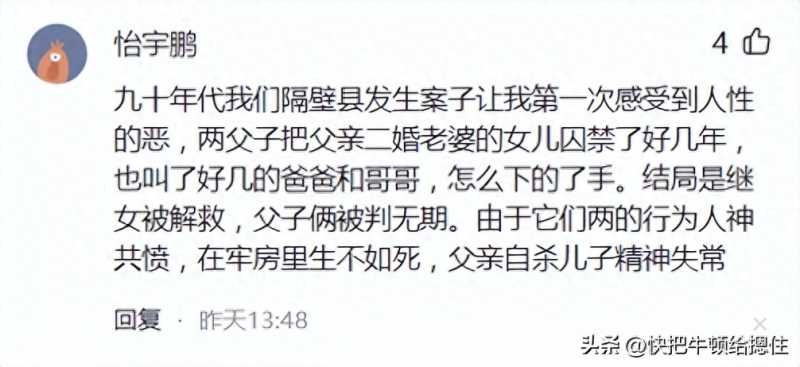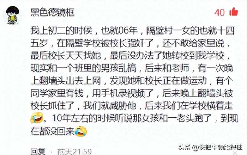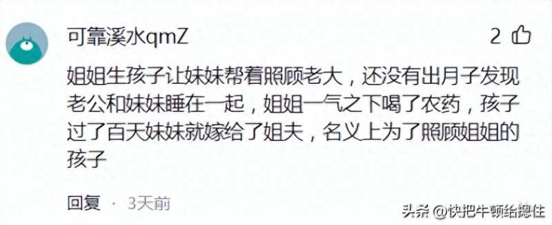 14、执着的雪梨V:我同学的父亲是村长,在那个年代和他妈妈自由恋爱算是很轰动的一件事,婚后做月子大妹妹来照顾姐姐,结果被这个姐夫霍霍了,那时候失身不好嫁人这姐夫就让小姨子嫁给了自己弟弟,又过了些年同学他小姨要读书离学校太远了,想着还是初中生年龄小就让住他家,结果还是没逃过姐夫的魔爪,那时候才十几岁,气的我同学妈妈差点死了,病歪歪好几年,最后他小姨成年就嫁人了,生的第一个女儿和他爸爸十分像,明眼人一看就知道是谁的种,他小姨的日子也不好过,被家暴是常事。