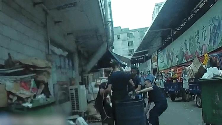 惊险南海一菜市场突然窜出食人鳄甩头摆尾一路暴走