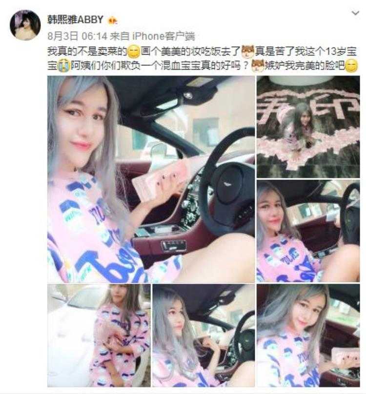 4月4日,网上最能作妖之十八线网红韩熙雅发微博称:单身一年了,想找个老公,1必须有公司,2必须有法拉利,3必须爱我,我才愿意给你生混血宝宝,要允许我做小三。疼我爱我,at一下身边有这样条件的,事成后我会生一个混血宝宝送给你。