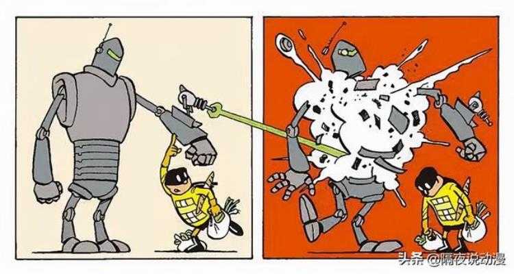 除了刚才提到的可以利用对话气泡攻击对手的文字大师,还有一位擅长搞发明的反派博士,他在其中一集漫画里发明了一台时空机器人,一发离子炮就能直接炸出时空虫洞。