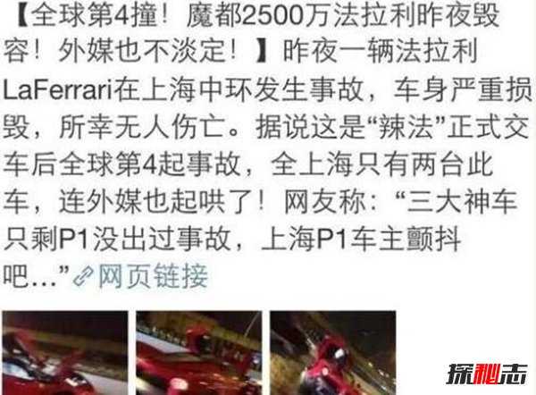 2015年4月28日,发生一起车祸,三千万的豪车瞬间变废铁。这台法拉利的车主叫秦奋 。事故中他没有受伤,这辆法拉利修理费可能高达上千万元 。看看他名下的这些豪车,和发生的这些事就知道人家是有多有钱,多不在乎钱了。