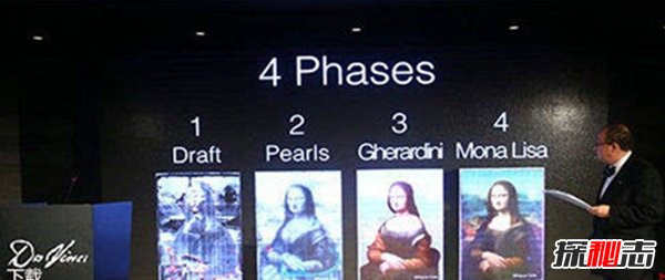 他一共将“蒙娜丽莎”分为了四个图层,第一层是达芬奇画的肖像草稿,姿态类似但是尺寸大于现今的画作;第二层是一幅《佩戴珍珠发饰的肖像画》,它覆盖了最初的草稿,专家推测其为文艺复兴时期的圣母或者圣女的画像;第三层为《丽莎·格拉迪尼肖像》;第四层就是我们现在看到的“蒙娜丽莎”。