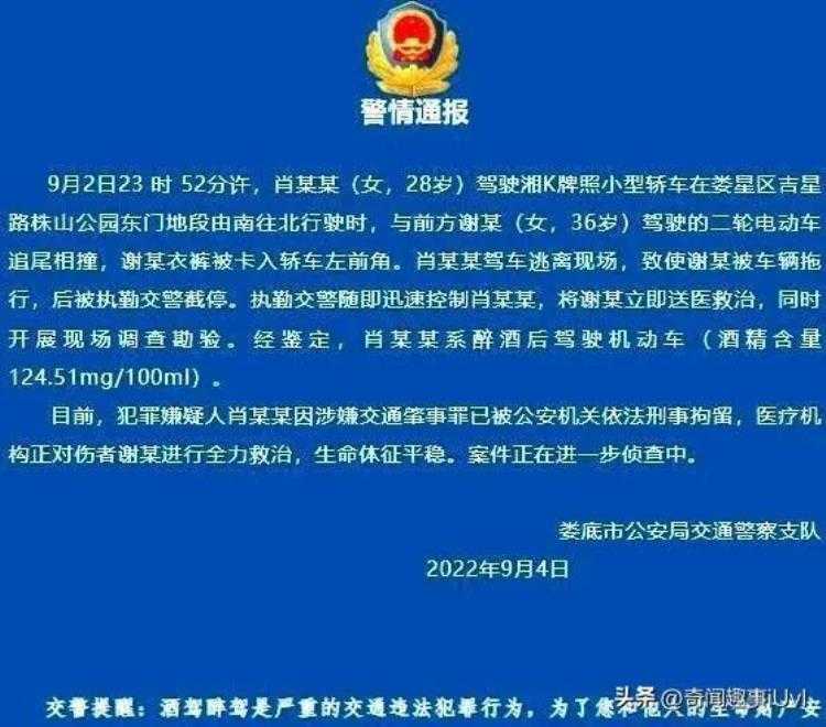 此事发生在9月2日23时52分许,根据9月4日,娄底市公安局交通警察大队通报的最新结果显示: