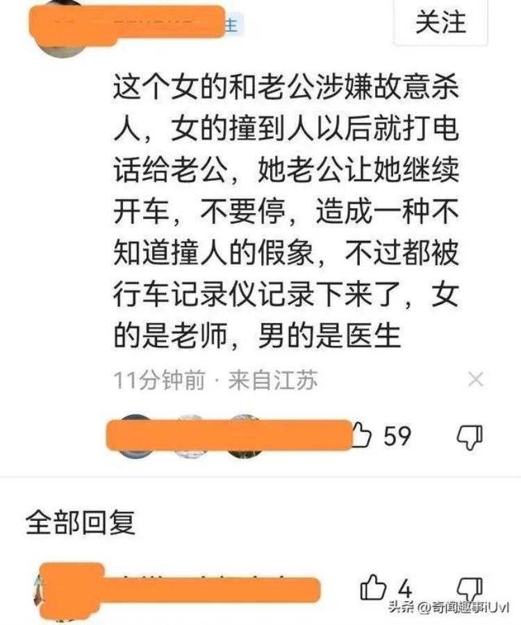 另外有网友爆料,女司机撞人后并非不知情,她当时不知道怎么办,于是就给自己的老公打电话,老公让她不要停车继续行驶赶紧甩掉,车内的行车记录仪记下了两人的对话,女司机通话记录曝光,女司机是教师,男的是医生,两人都是公职人员。