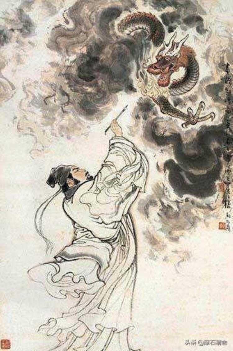 “张僧繇于金陵安乐寺画四龙于壁,不点睛。每曰‘点之即飞去’,人以为妄诞,固请之,须臾,雷电破壁,二龙乘云腾去上天,二龙未点眼者皆在”。