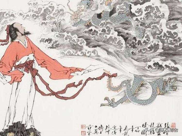 曹不兴曾于溪水中见一赤龙,夭矫波间,乃画《赤龙图》,以献吴末帝孙皓。