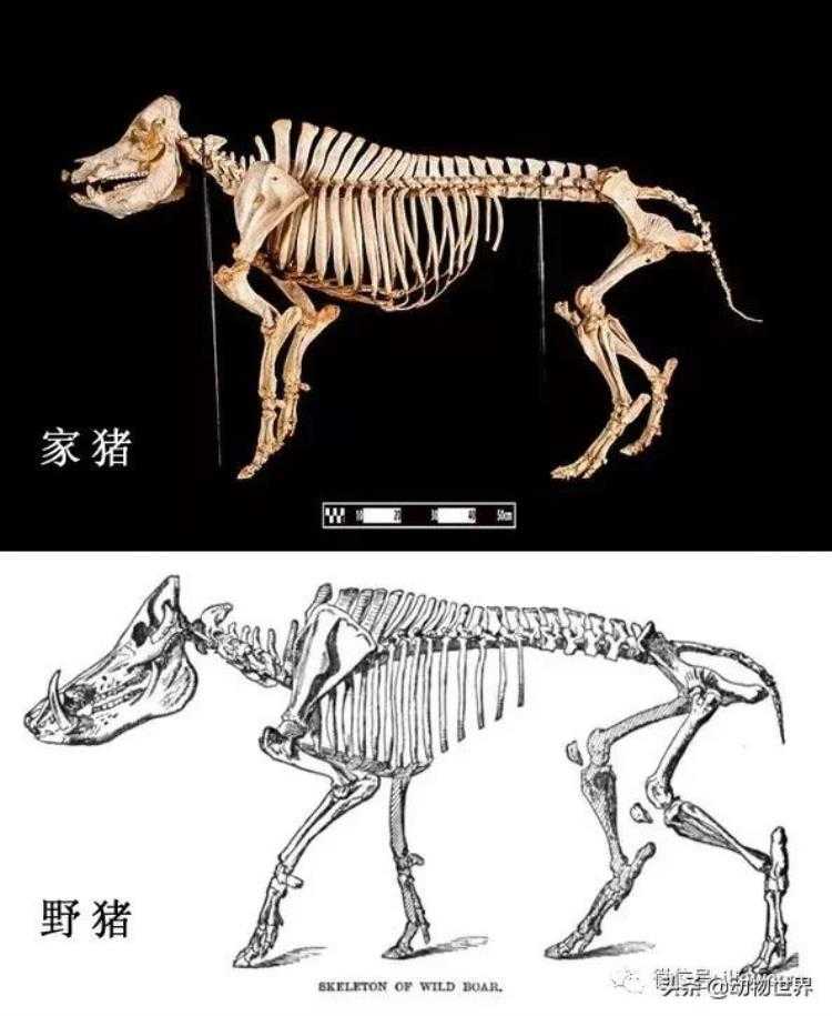 家猪长肉的后半部占身体75%以上,野猪的前后体各占一半。家猪若野放,经过短短数代的天择筛选之后,就会开始产生返祖现象,逐渐恢复为野猪的体型。