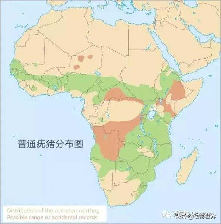 普通疣猪 或称疣猪,主要分布于非洲,热带雨林和北非沙漠以外之地。它们为世界上少数能够在只有些许水的环境下,依旧能够存活的动物。能在超过常温许多的高温下存活。