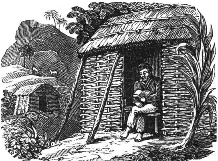 塞尔柯克虽然没有武器,但是这座小岛并不大,他很快就学会了追捕山羊,吃上了烤羊肉。另外,他用岛上的树木给自己盖了两间小屋,有了遮风挡雨的地方。