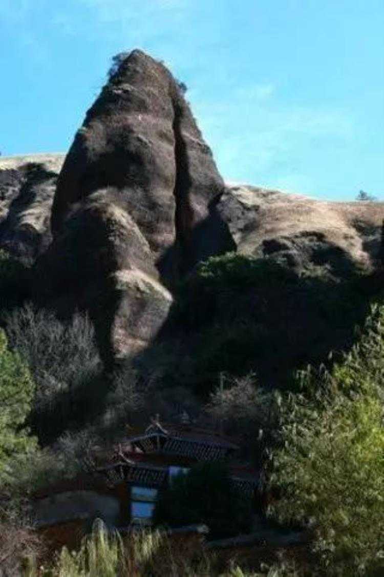 更令人不可思议的是四周的山峦,不是林木森森就是芳草萋萋,唯有这公母二石,赤条条裸露着红褐色的岩石。