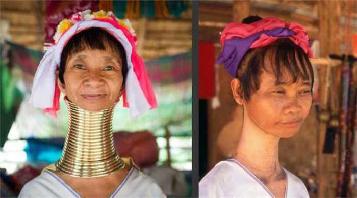 这与巴东女性的情况不同,她们从小开始佩戴铜项圈,铜圈是一整根慢慢缠绕上去的,而不是焊接的,首次佩戴的铜圈就有1公斤的重量,这个重量对于儿童的骨骼发育来说是有影响的。逐渐地,铜圈的数量不断增加,重量也不断增加,导致了女孩们的锁骨、胸腔和肩膀被压缩而变形,给人以脖子特别长的视觉效果。因此,巴东女性的长脖子实际上是通过对骨骼和肌肉的持续挤压和影响产生的,而不是真正意义上的脖子拉长。