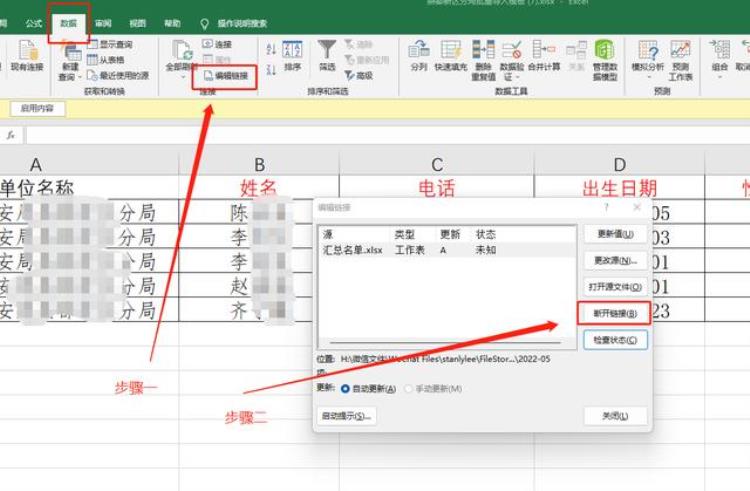 也就是在人员信息整理时,对接的老师是通过黏贴复制功能,将其他文档的信息直接黏贴到我们提供的模板中。但数据所带的链接没有清除掉。