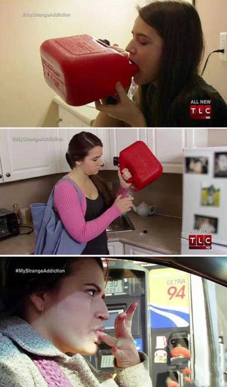 14.英国少女怪异癖好喝汽油上瘾。英国一名少女嗜好喝汽油,每天都要喝12匙汽油。她表示,开始喝的时候喉咙有刺痛感和灼烧感,但是还是禁不住要喝。她说,尽管喝汽油对自己有害,但感觉很好。据悉,喝汽油对人体的神经系统、心脏、肝脏、肾脏、肺和骨髓都能造成严重的伤害。