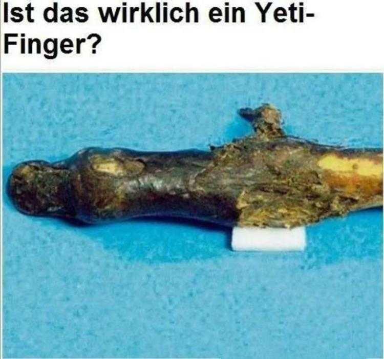 4.“雪人”遗骸——2011年12月,科学家们在尼泊尔发现一根神秘的手指骨骼,怀疑这是“喜马拉雅山雪人”的遗骸。这根手指被尼泊尔当地的僧侣当做“吉祥物”供奉起来。科学家将把它拿到伦敦一家博物馆进行DNA测试,以证实其是否是“雪人”的手指。