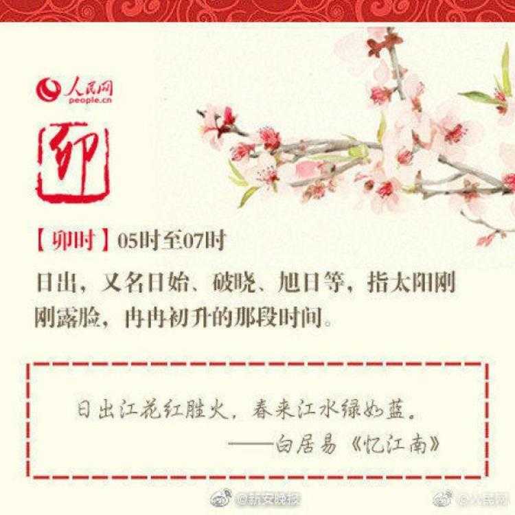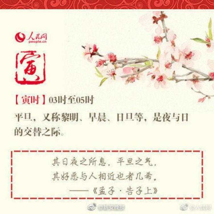 新安国学【全国十二时辰,你出生在几时?】①子时:23点到1点,夜半,又名子夜,夜色最深重之时。②丑时:1点到3点,称鸡鸣。③寅时:3点到5点,平旦、黎明,夜与日交替之际。④卯时:5时至7时,日出,又名破晓等,太阳刚刚露脸…中国十二时辰 转起长知识!@人民网
