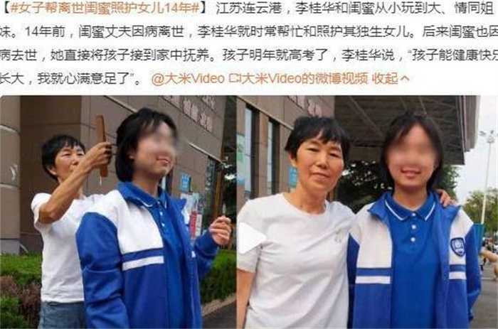 近日江苏连云港市一位女子在她的闺蜜去世之后,帮助闺蜜照护女儿14年的消息引起了人们的关注,女主人公李桂华和她闺蜜之间的深厚情谊也让不少网友动容。