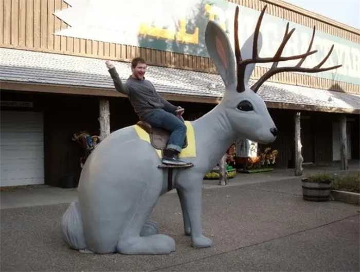 随后,在1965年,在市中心竖起了一座 8 英尺高的鹿角兔雕像,游客还可以骑上去玩。