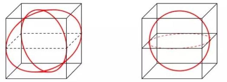 如果把牟合方盖放入一个边长等于圆柱直径的正方体,它的上下两个顶点,和侧面四个曲面,是刚好和正方体的六个面相接或相切的。而牟合方盖与正方体的内切球也是刚好相切的,如下图所示: