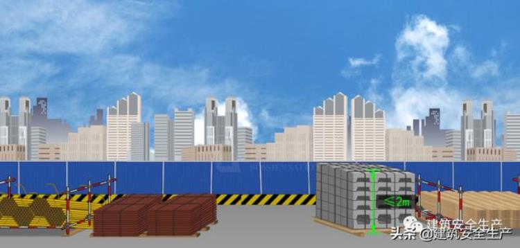 坍塌事故防范措施(一)施工现场物料堆放应整齐稳固,严禁超高。模板、钢管、木方、砌块等堆放高度不应大于2m,钢筋堆放高度不应大于1.2m,堆积物应采取固定措施。