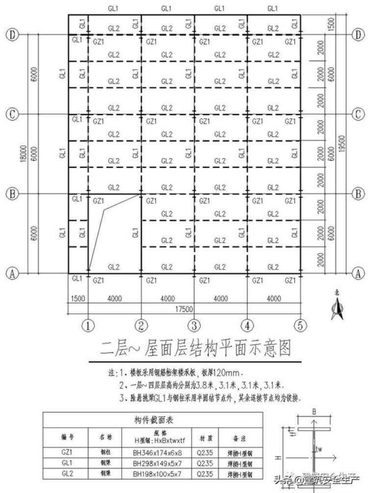该建筑钢柱、钢梁均为工厂制作后现场安装。钢柱、钢梁为H型钢,钢材型号为Q235。经委托健研检测集团有限公司对坍塌体开展测量、取样及检测工作,检测结果表明钢材强度符合国家标准。