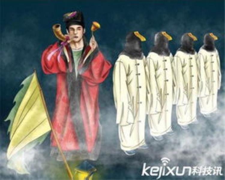 相传几千年前,苗族的部落首领蚩尤在黄河岸边与黄帝部落厮杀,直打到尸横遍野,血流成河。要撤退时,蚩尤对身边的军师说:“我们不能丢下战死的弟兄不管,你用点法术,让这些弟兄魂归故乡。”军师在尸首中间默念咒语,祷告神灵。作法后,原本躺在地上的尸体都站了起来,跟在蚩尤高举的符节后面向南行走。追兵赶来,蚩尤和军师联合作法,引来五里大雾,将敌人困在大雾之中。