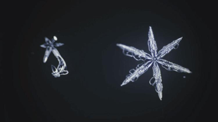 例如,在-5℃左右形成的雪花就可能是柱状的。另外还有三角形、不规则粒子等形状。通常空气湿度越大,雪花的生长就越快,分支也越精细。