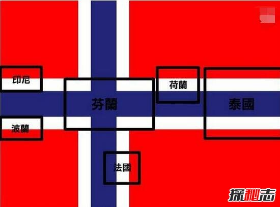 人们称挪威国旗是国旗之母,挪威国旗是由靛蓝色十字架加上白色边和周围的红色组成,为什么会被称为国旗之母呢?仔细看你会发现挪威国旗的秘密,挪威国旗上隐藏着六个国家的国旗图案,分别是:法国、荷兰、芬兰、波兰、泰国、印尼,这一发现令人惊奇!