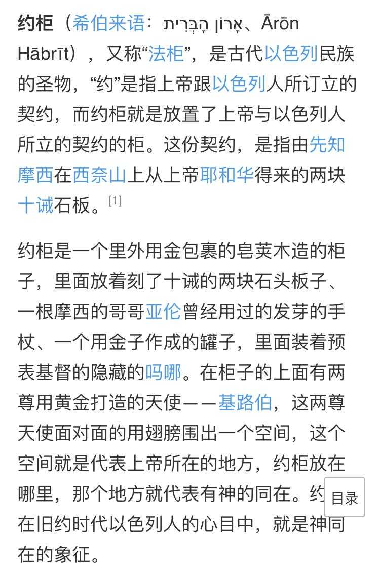 但是不是真的呢?据说那里是有一个镀金的木柜子,上面有摩西十诫。2009 年的时候,主教说他们将展示约柜的真正面貌。后来……他反悔了。于是我们至今仍不知道真相。