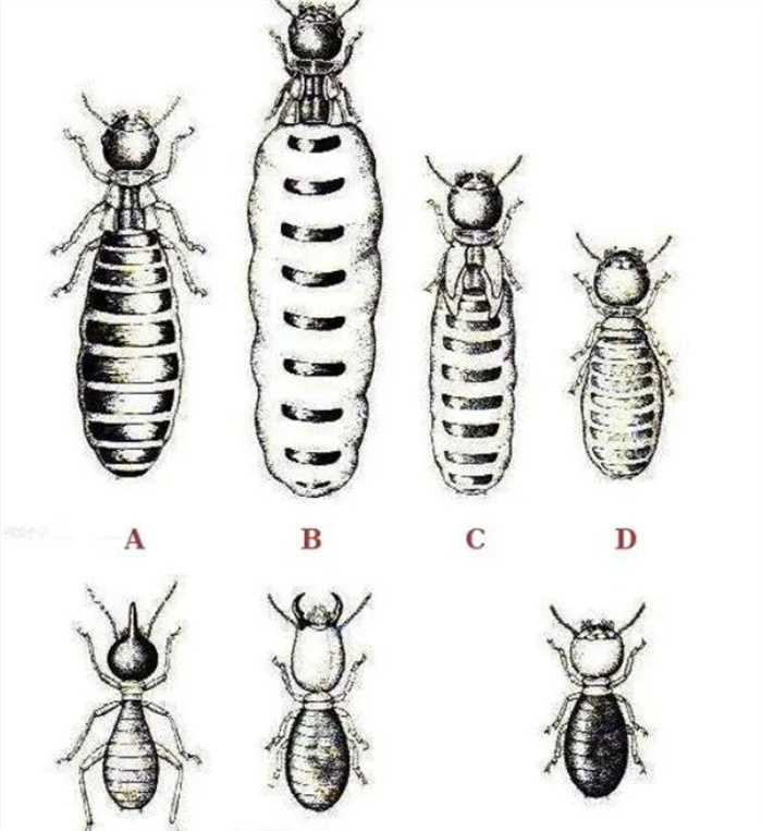 白蚁家族中,蚁后、蚁王、若虫、工蚁和兵蚁,其中只有兵蚁完全不育,其他几种白蚁都有繁殖能力。