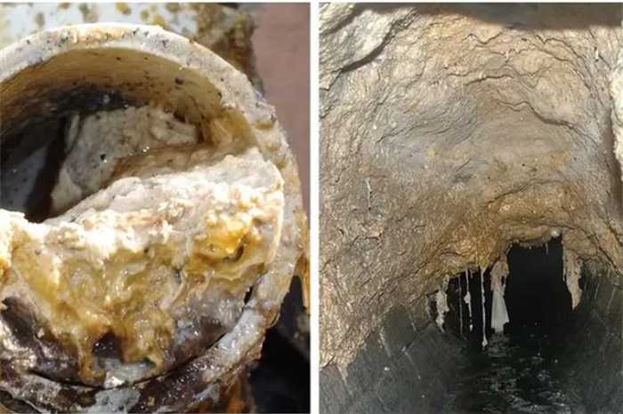 图:被油脂堵塞的水管和下水道