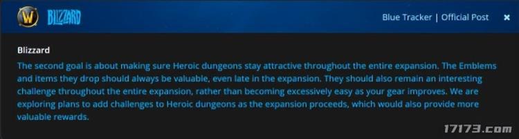 暴雪在今年6月23日发布了一则名为《开发者更新:“巫妖王之怒”内容前瞻》的蓝贴,在蓝贴坦言原汁原味已经不再适合怀旧服,因此他们的设计理念从“原汁原味”变成了“小修小改”,没想到暴雪做出了一个更大胆的决定,直接在英雄地下城里获取团本装备!