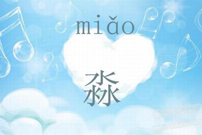 淼属于品字形结构,由三个水组成,是典型的象形字,从甲骨文开始,“淼”就是三组水波纹的造型,所以主要形容水势很大,水域广阔的样子,在《楚辞》中就曾有过记载。