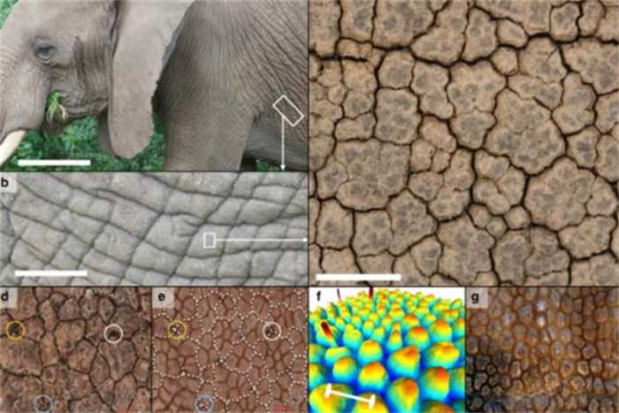 直到2018年的时候,一组日内瓦大学科研团队,对大象皮肤进行了深入研究,用电子显微镜和光学显微镜对皮肤数据进行收集和分析。他们之前研究过鳄鱼皮肤褶皱原因是拉伸应力或收缩过程导致的,怀疑大象也是如此。