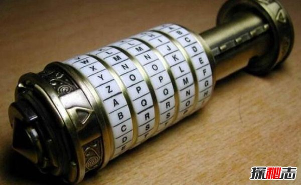 9、达芬奇设计的密码也是很多人相当着迷的,想要打开密码筒,需要揭开5位数的秘密,上面有5个转盘,每个转盘有26个字母,所以有11881376种组合,而且不能强行打开,只要强行打开里面的东西就会自动被醋液溶解,此外据说蒙娜丽莎肖像暗藏神秘符号。
