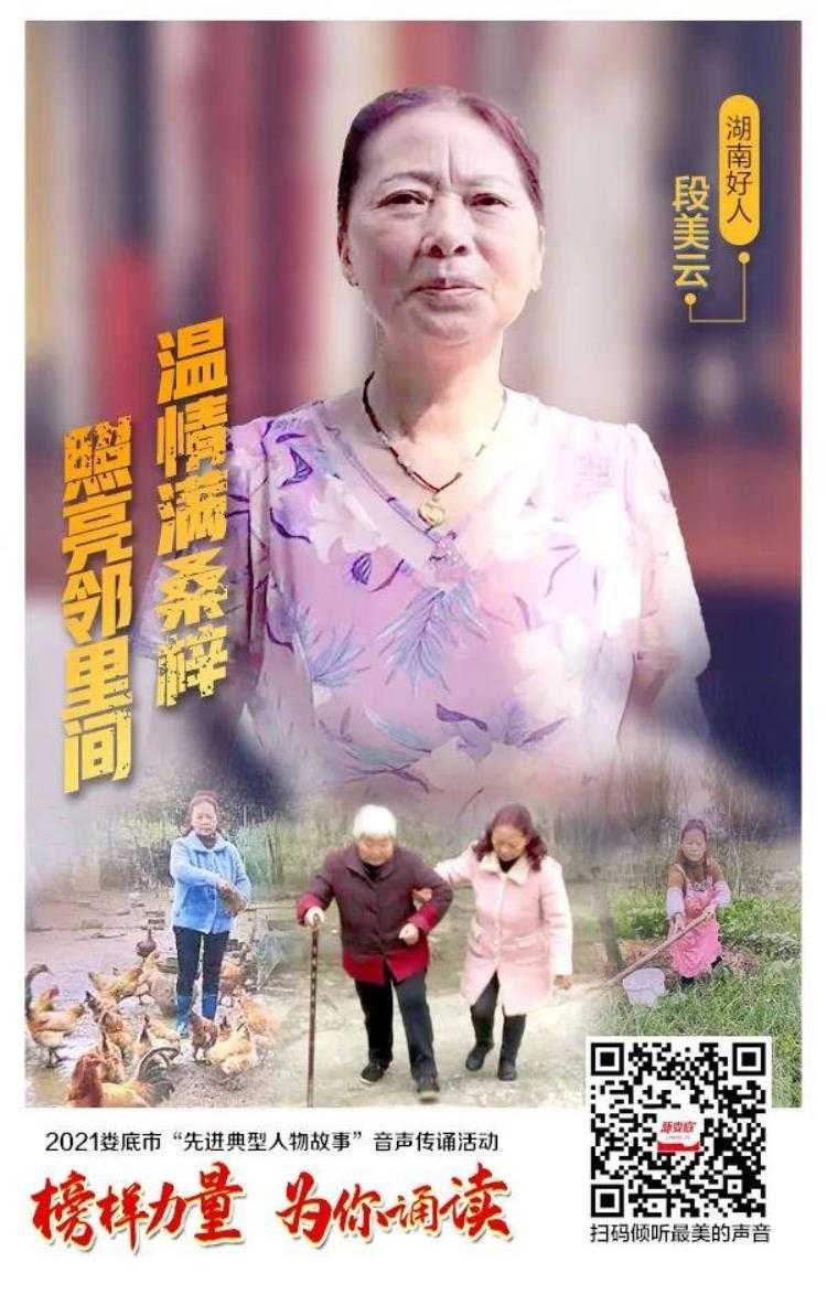 今天故事的主人公名叫段美云,她几十年如一日义务照顾孤单五保户、残疾人,善心感动乡邻,荣获“湖南好人”称号。接下来让我们一起来倾听她的故事。
