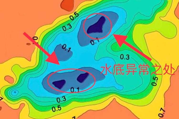 探查结果显示,在老爷面水域附近,存在有两个磁性异常区域。