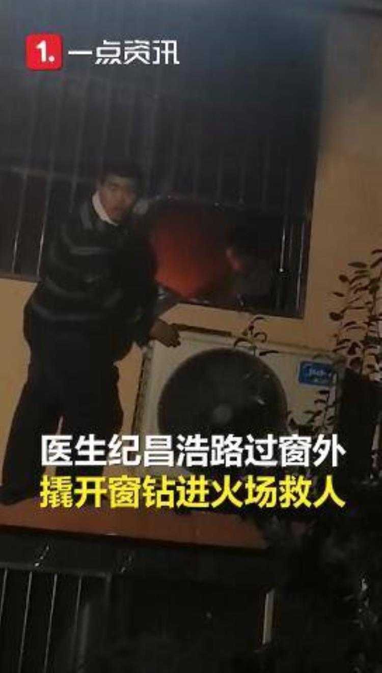国庆期间,山东聊城一居民家中突然发生了火灾,两名儿童因房门反锁而被困在屋里。在面对这种紧急的关头下,从窗边路过的纪昌浩医生当机立断的撬开了窗户钻进火场里将这两名被困的儿童救了出来。