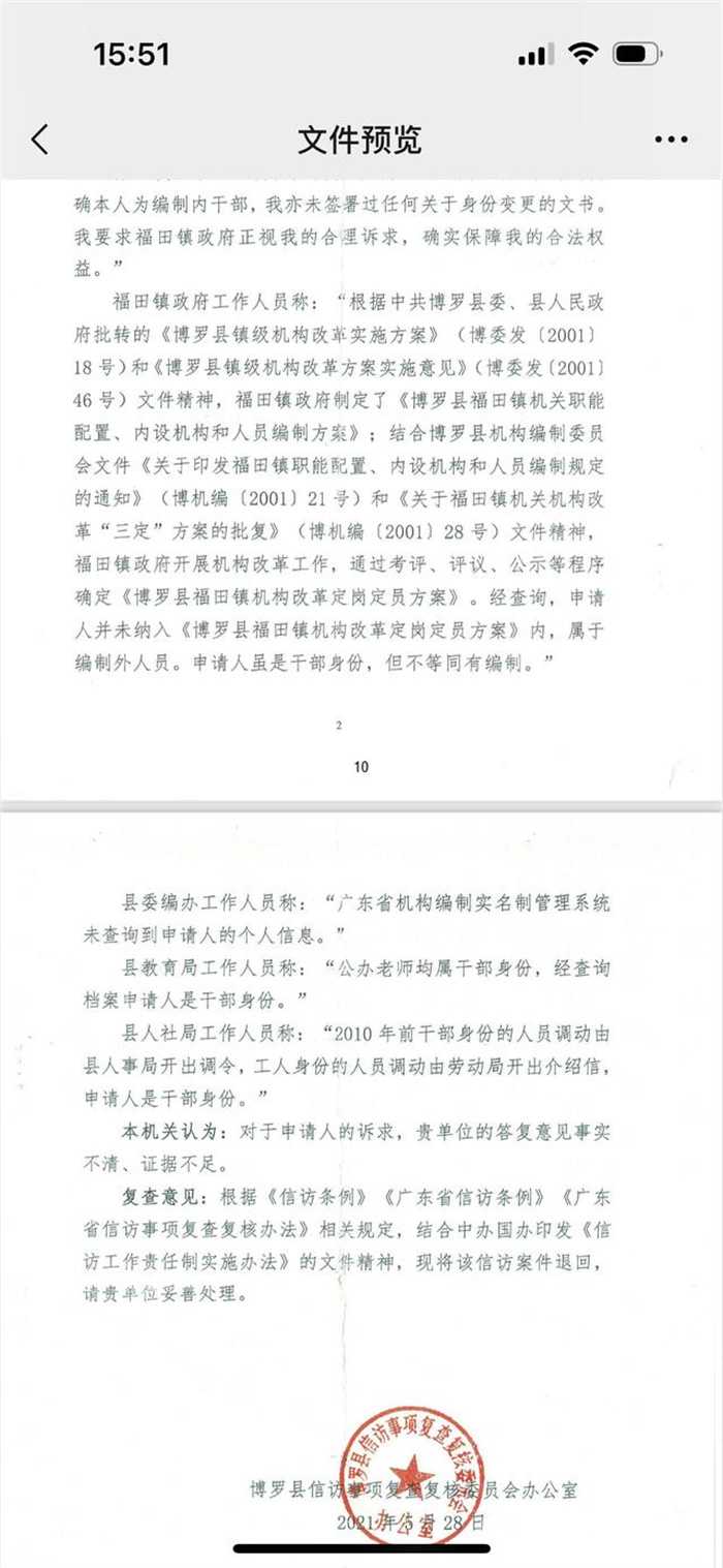 据了解,这名教师名叫曾耀强,他居住在广东惠州博罗县,而且在退休之前是在博罗县福田镇的政府工作单位工作,在1991年的时候,从公办学校被调动到了政府里面工作,他的个人档案当中是填写了自己的一份公务员过度审批的表格,而且他的审批表是通过了单位主管部门的同意的,并且认定他为国家的公务员,不过现在在办理退休的时候,他却被告知是职工身份,对此他也是询问过自己的政府单位,而政府单位回答称他们整个政府里面总共有88名编制人员,但是却没有他的名字。