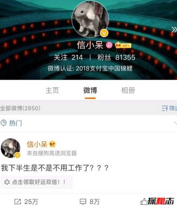 导语:三百万分之一的信小呆成为了2018支付宝锦鲤,一时走红网络,网友们对她的运气纷纷表示羡慕不已。作为被马云爸爸宠爱的信小呆获得的大奖到底值多少钱呢?想必大家都很关心这个问题,接下来呢就由探秘志小编为大家揭秘中国锦鲤全球免单价值多少以及奖品清单一览吧!
